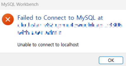 그러나 Spring Boot에서 connection timeout, MySQL Workbench에서는 Unable to connect to localhost 라는 연결 오류가 발생했다.