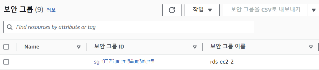 [AWS 콘솔 홈] - [서비스] - [EC2] - [네트워크 및 보안] - [보안 그룹] 에 들어가면, 보안 그룹 목록을 확인할 수 있다.