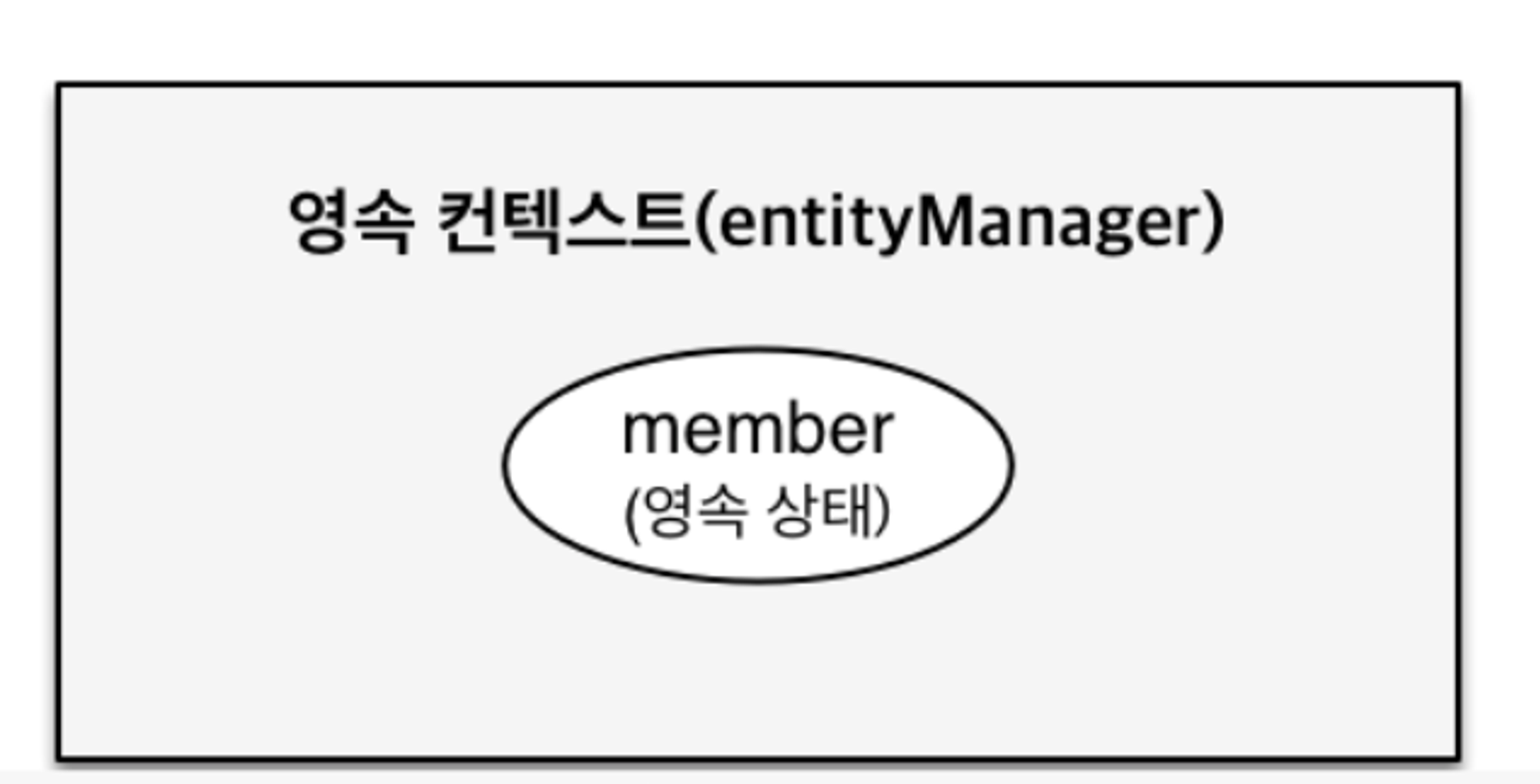 이렇게 영속성 컨텍스트가 관리하는 엔티티를 영속 상태라 한다. - 이제 회원(member) 엔티티는 비영속 상태에서 영속 상태가 되었다.