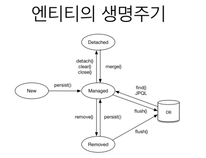 - 엔티티 매니저로 엔티티를 저장하거나 조회하면, 엔티티 매니저는 영속성 컨텍스트에 엔티티를 보관하고 관리한다.