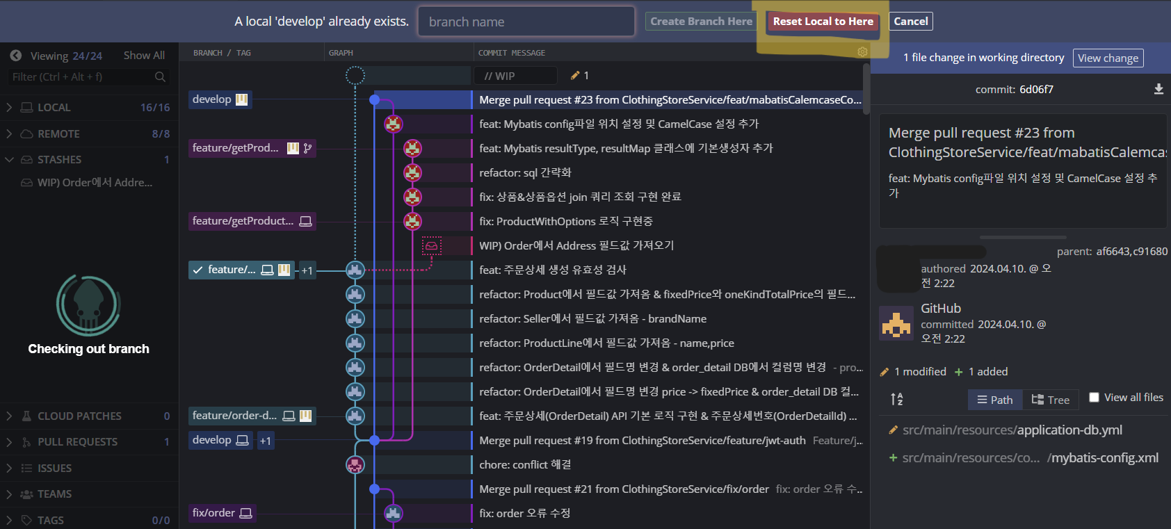 | [GitKraken] Rebase로 커밋 히스토리 깔끔하게 정리하기(3개 브랜치 연속으로 merge 시키기) (0) | 2024.06.22 |